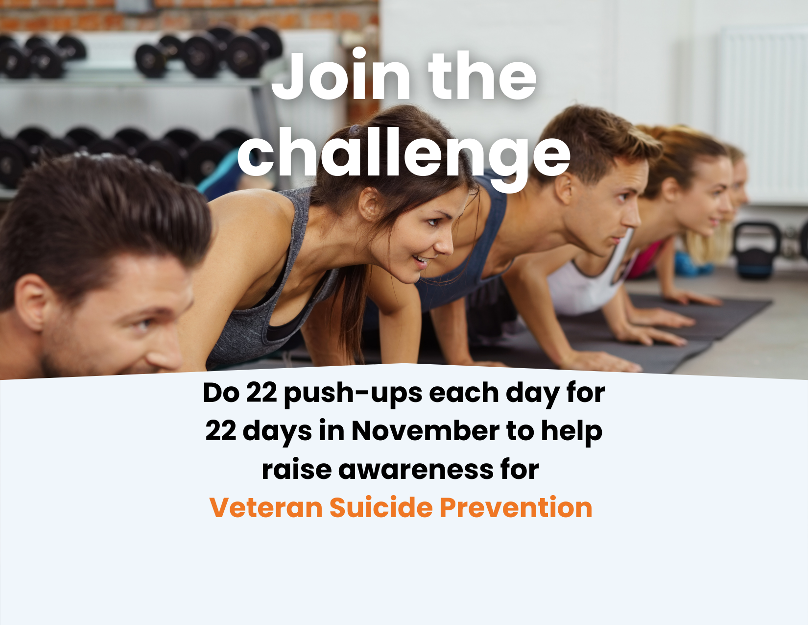 In recognition of our Veterans, we want to shed light on a devastating issue about Veteran suicides, and how they are at 57% higher risk of suicide. By doing so, we're raising awareness by doing 22 push-ups for 22 days starting November 1st. We'd love for you to join us and take the pledge here: www.fittopass.com/22x22